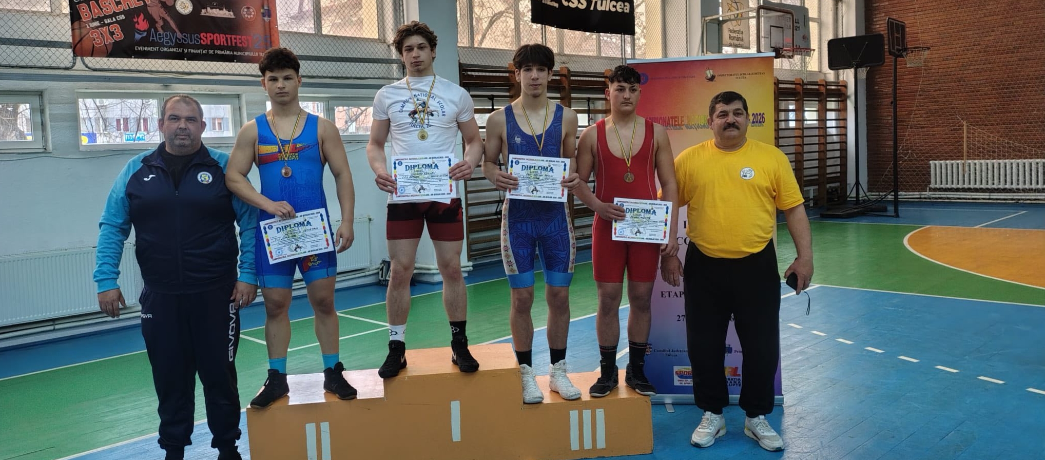 La finalul săptămânii recent încheiate, la Tulcea, s-a desfășurat etapa finală a Campionatului Național Școlar la Lupte. Deși a condus finala cu scorul de 5-0, Ionatan Petrovici (foto pe podium, elev în clasa a IX-a la Liceul cu Program Sportiv Arad) a fost învins în ultimul moment, scor 6-5, obținând astfel argintul la categoria 71 kilograme. Un alt sportiv al CSS „Gloria” Arad, Patric Oancă (elev în clasa a IX-a la Colegiul Național „Elena Ghiba Birta” Arad), a fost foarte aproape de podium, însă a pierdut la limită lupta pentru bronz și a încheiat competiția pe locul 5 în cadrul categoriei 110kg. Sportivii sunt antrenați de profesorii Ovidiu Burghelea, Răzvan Codrean și Ioan Coste.