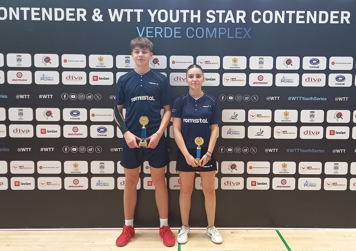 Primele medalii cucerite de sportivii români la WTT Youth Contender Podgorica 2025, open internațional de tenis de masă pentru cadeți și juniori. Competiția se desfășoară în Muntenegru, între 13 și 16 octombrie, în Verde Complex. Sportivii români participă la diferite categorii de vârstă, iar tricolorii au luat medalii în a doua zi. Pe podium a urcat și perechea tricoloră de dublu mixt formată din Maya Madar (CSM Arad) și David Toro. La U15, tricolorii i-au învins cu 3-0 pe albanezii Qoshja și Kokoneshi, în 16-mi și cu 3-1 la seturi pe bulgarii Savov și Nakova, în sferturi și au beneficiat de o victorie prin neprezentare în optimi, cu indienii Nayak și Rewaskar.