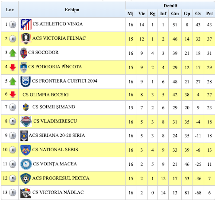 Etapa viitoare (11 aprilie, ora 11): Vladimirescu -Șiria, Macea – Felnac, Sebiș – Pâncota, Pecica II – Vinga, Șimand – Socodor, Victoria Nădlac – Olimpia Bocsig 0-3 (f.j.). Frontiera Curtici va sta.