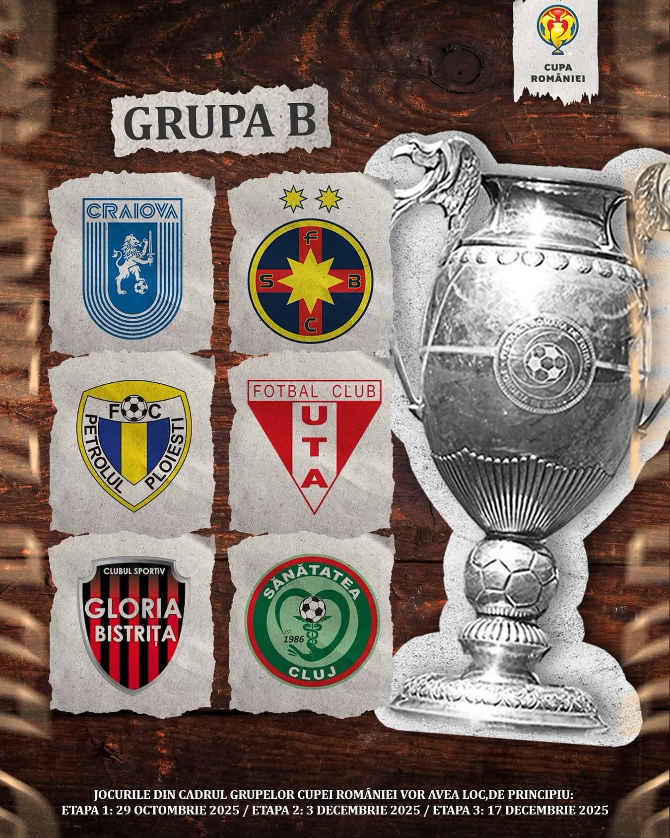 UPDATE: În urma unei erori de comunicare venite de la FRF, programul grupei B din Cupa României a fost modificat, astfel că UTA le are ca adversare pe FCSB, acasă și divizionara secundă Gloria Bistrița, în deplasare. Așadar, roș-albii nu vor juca cu Universitatea Craiova și Sănătatea Cluj, cum se știa initial! Ca la noi, la nimeni…