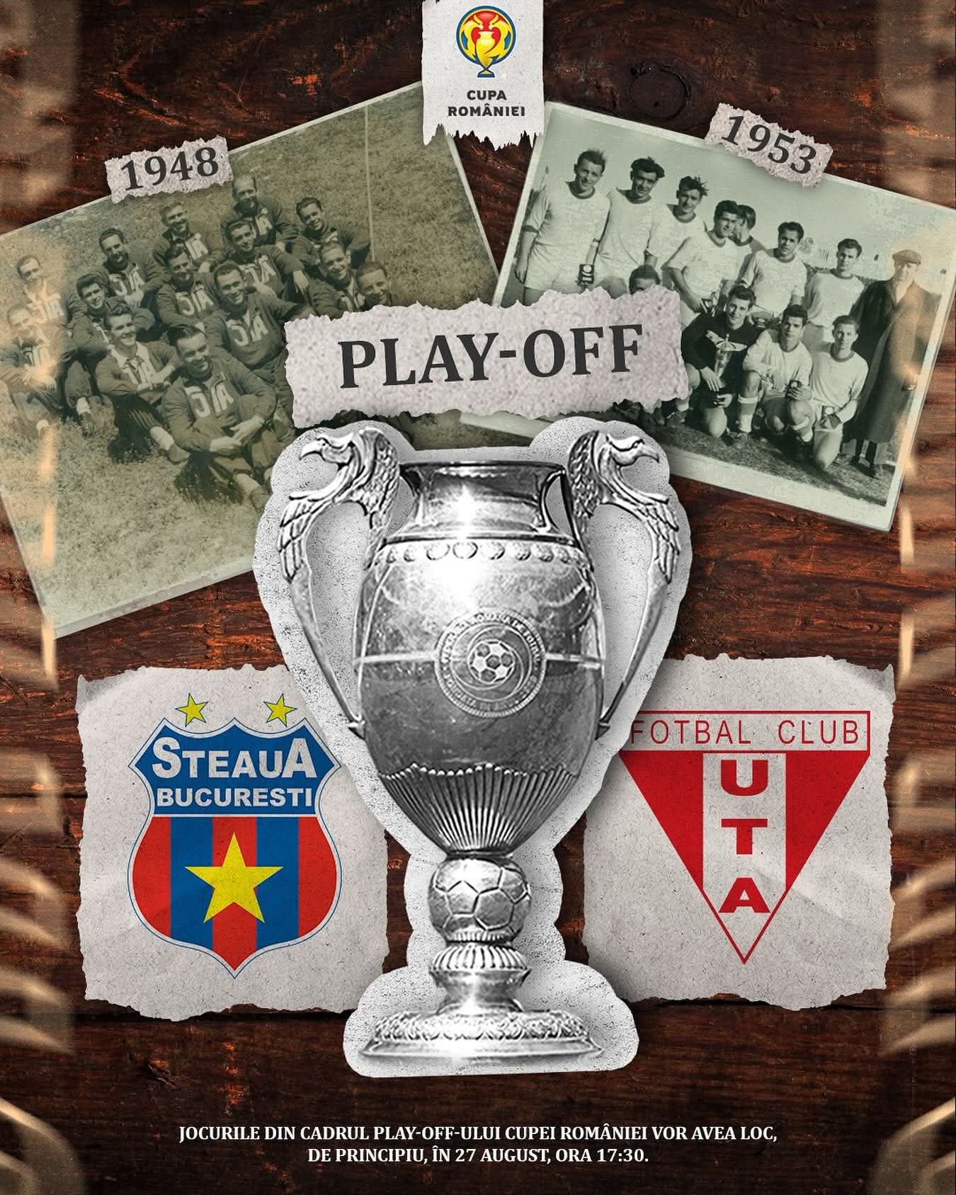 Astăzi a avut loc tragerea la sorți pentr play-off-ul Cupei României la fotbal, data și ora oficială fiind 27 august, ora 17:30. UTA va întâlni divizionara secundă Steaua București, motiv de sărbătoare pentru ultrași, înfrățiți!